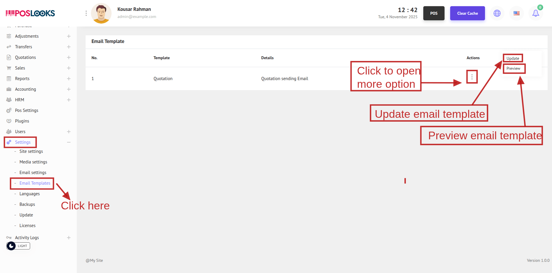 Now to update an email template click the three dots(.)and then click Update. A Modal will appear.