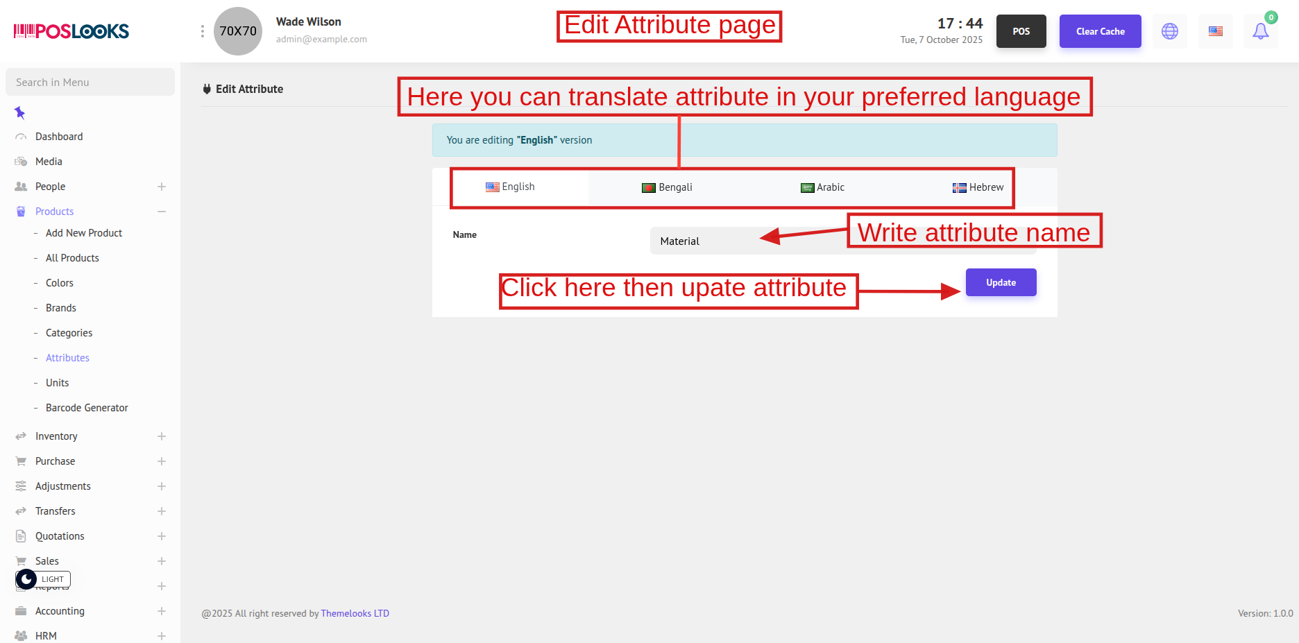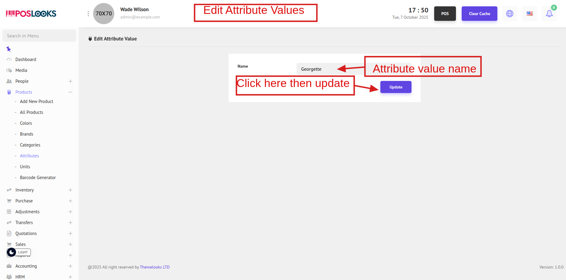 To update an attribute, click Edit from the Attribute List page. You will be redirected to the Edit Attribute page.