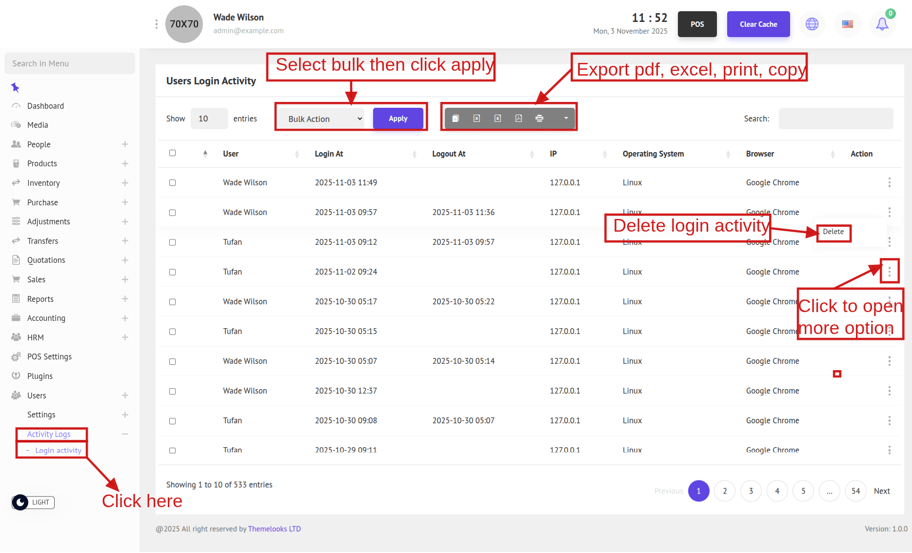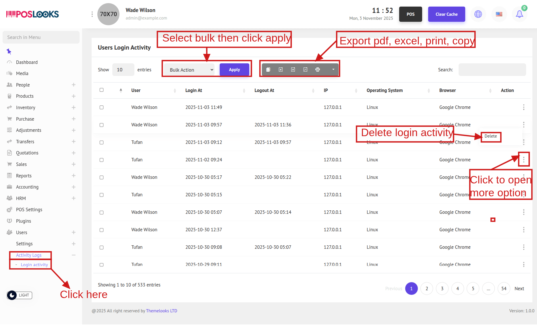 To see all the Login Activities, Follow Activity Logs -> Login Activity.