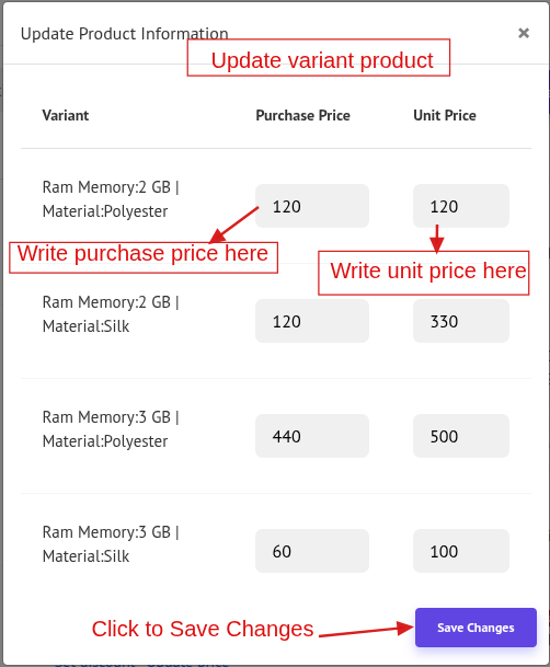 If you click Update Price, a modal will appear where you can update the product price and save the changes.