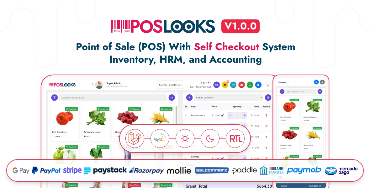 With advanced Self Checkout, POS Manager, Accounting, HRM, and Inventory modules — POSLooks delivers enterprise-level functionality in a sleek, modern interface.