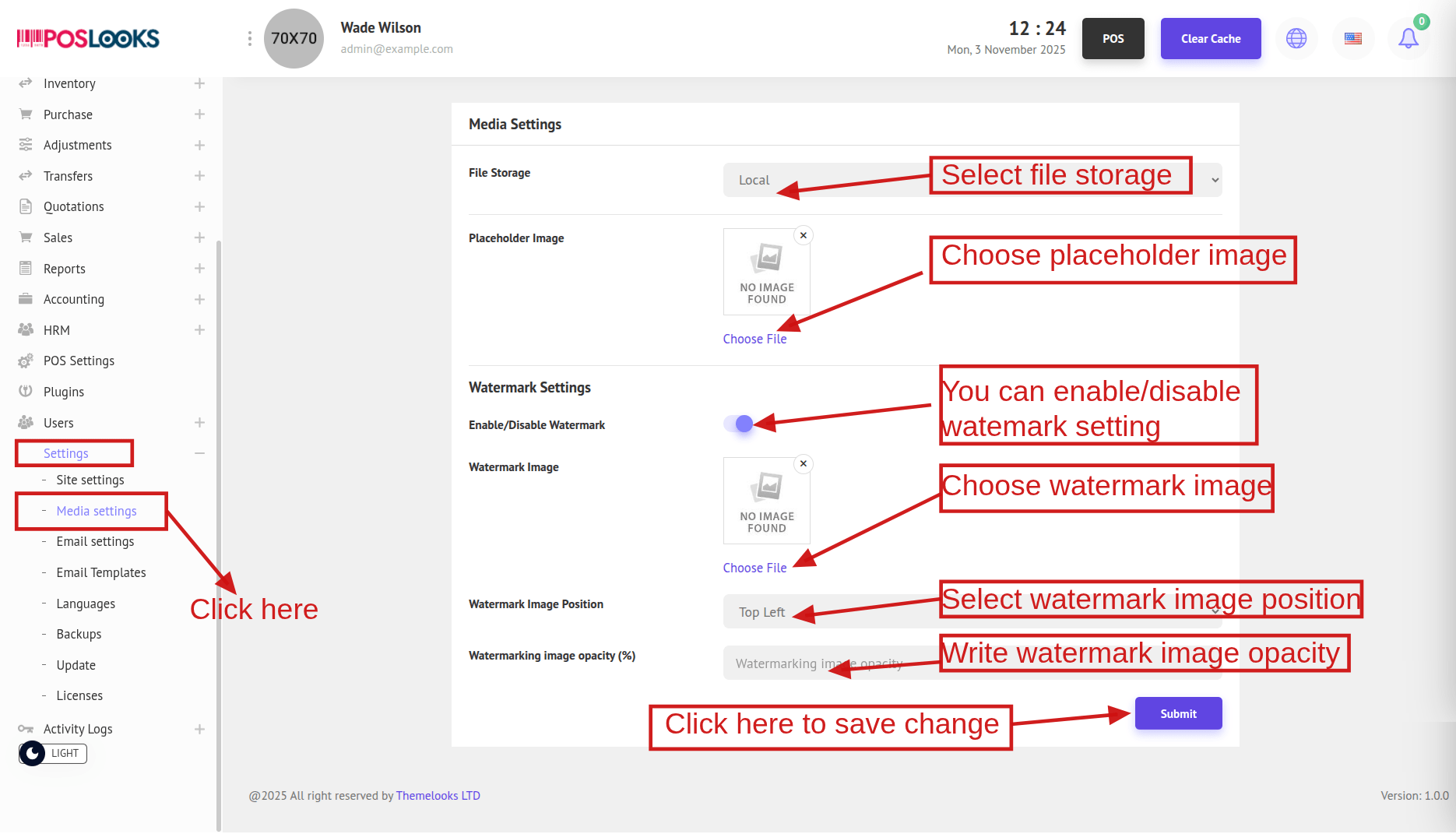 - Watermark Image opacity(%): In this section, you can set watermark image opacity in %.