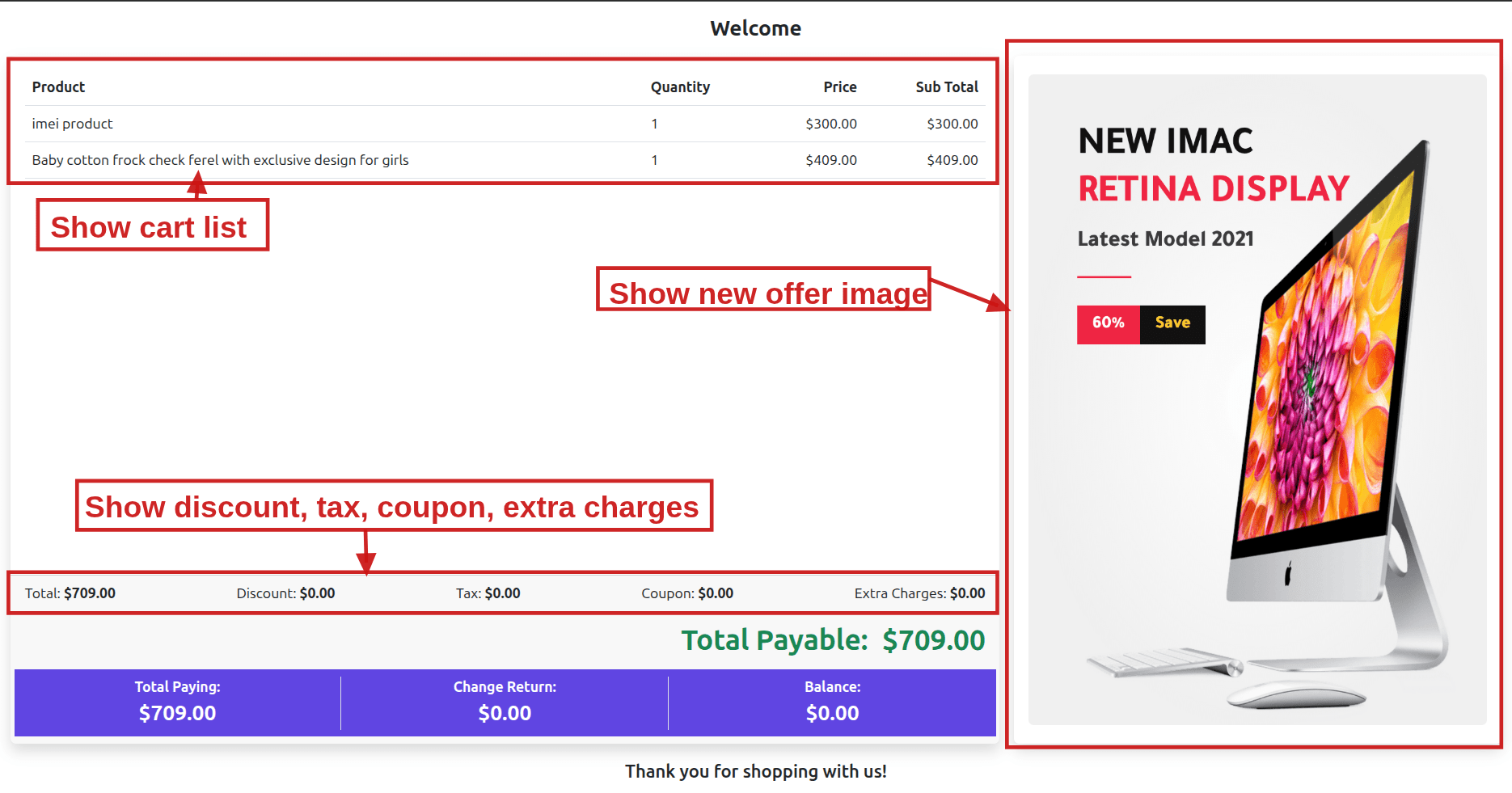14. Customer Display: Click the Customer Display icon in the header to open it in a new window.