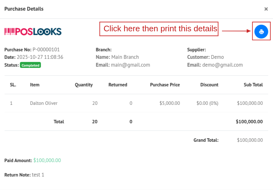 You can also view the details of a purchase by clicking the View button. A popup modal will appear showing the purchase details.