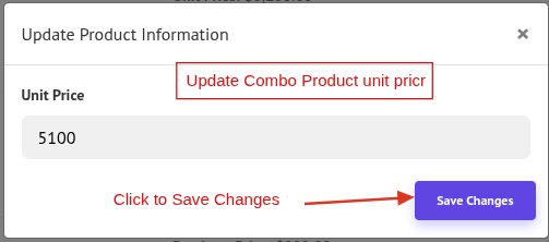 If you click Update Price, a modal will appear where you can update the product price and save the changes.